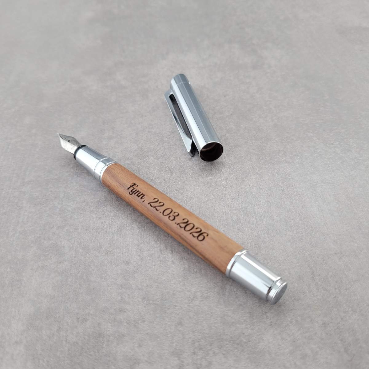Personalisierter Füllfederhalter aus Holz als Geschenk zum Standesamt, zur bestandenen Prüfung oder zum Jahrestag