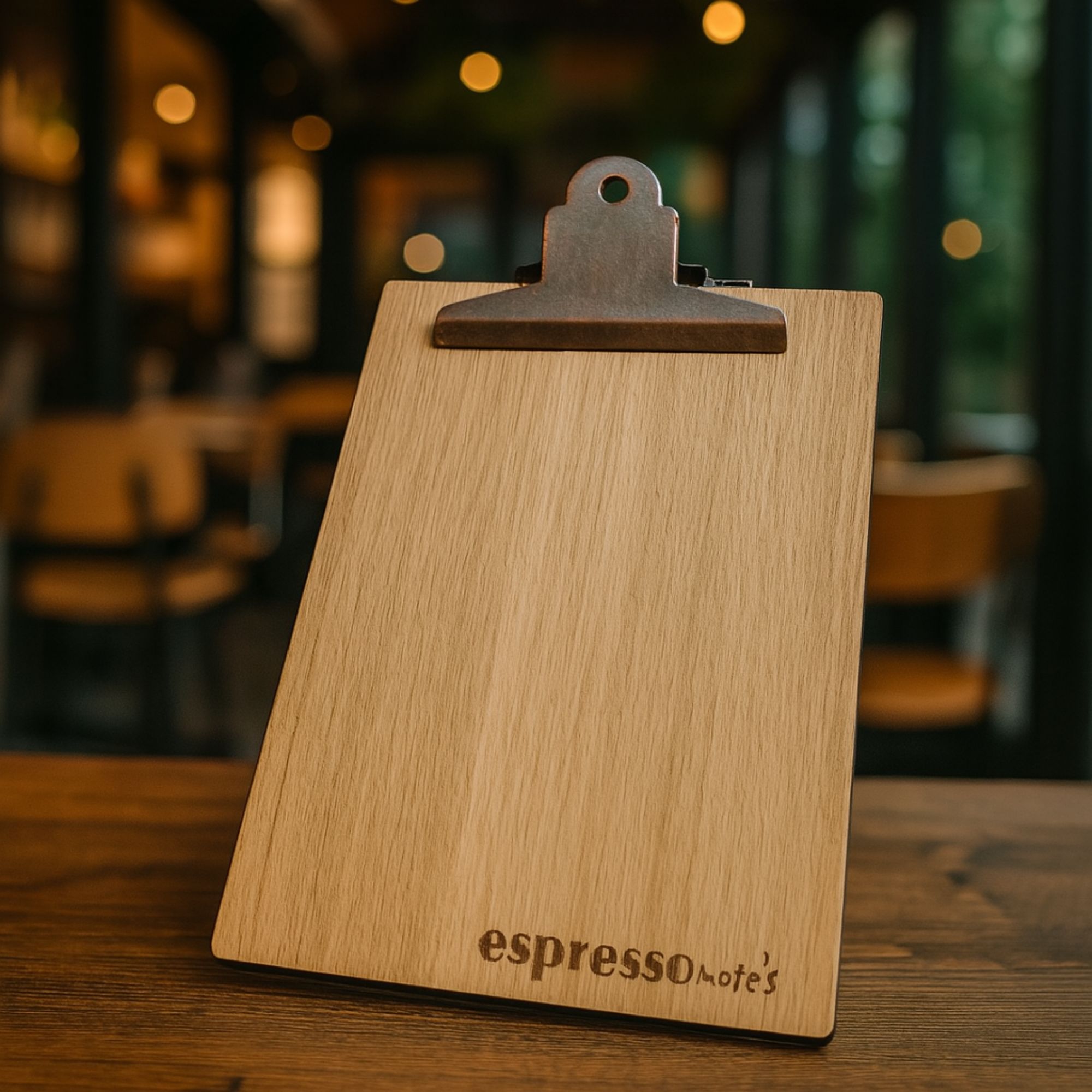 Die rustikalen Klemmbretter aus Holz – auf Wunsch mit Logogravur auf Vorder- oder Rückseite. Jedes Stück transportiert Deine Marke. Ein Accessoire für Cafés & Restaurants mit Charakter.