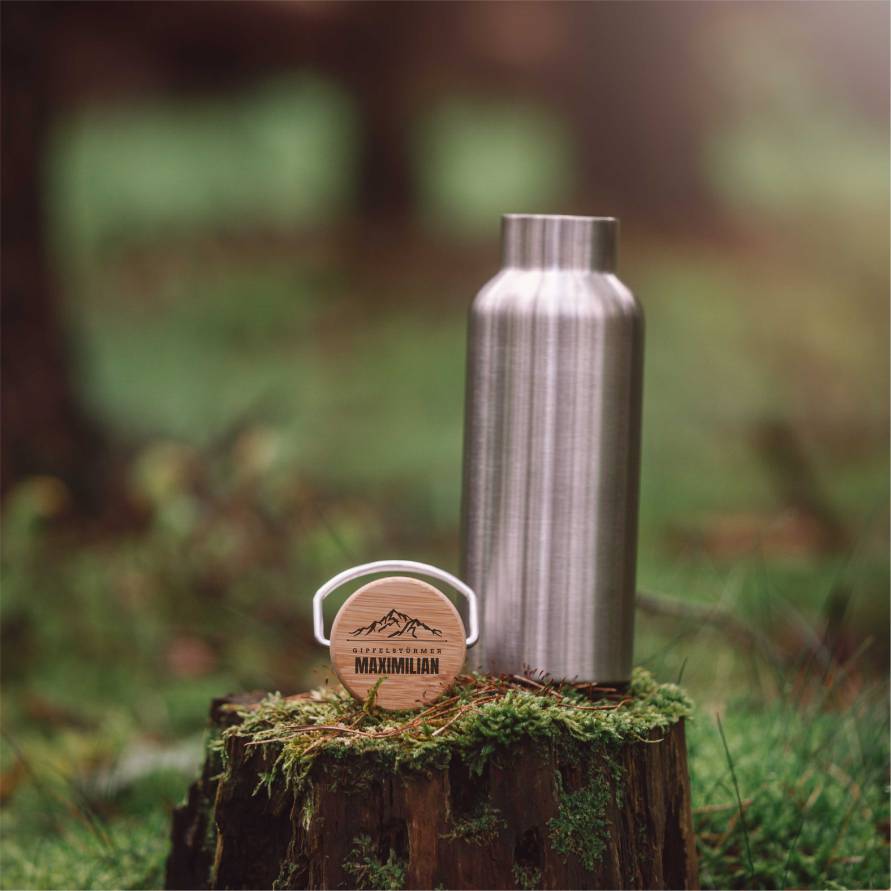 Dein treuer Begleiter für den Gipfel: Das personalisierte Outdoor-Set aus Edelstahl & Bambus