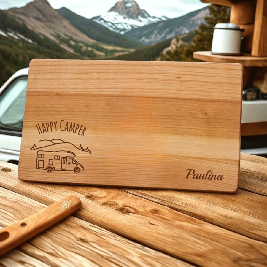 Ob mit Wohnmobil oder Zelt - Camper sind gerne draußen und lieben ihre Behausung. Das solltest Du im Hinterkopf haben wenn Du ein Geschenk für Camper, jung oder alt, suchst. Du könntest also etwas für die Camping Küche verschenken, z.B. ein Bild vom geliebten Wohnmobil auf einem Frühstücksbrettchen - aber auch Werkzeug wie Messer oder Multitool sind als sinnvolle, personalisierte Geschenke geeignet. Lass Dich von unseren Geschenkideen für Camping Freunde inspirieren!
