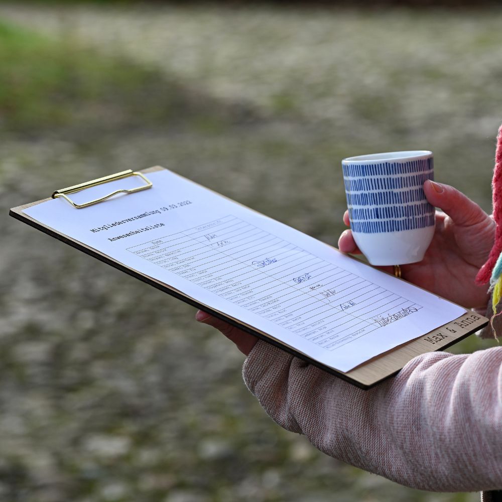 Klemmbrett aus Nussbaumholz – mit goldener Klemme & individueller Gravur