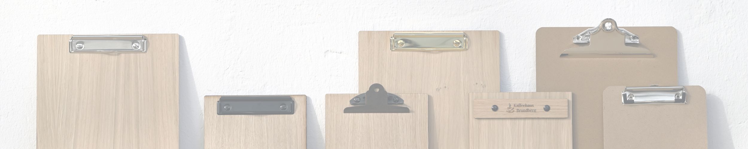 Hier findest Du eine große Auswahl an Klemmbrettern. Die unterschiedlichen Arten können als Menübrett, Notizbrett, zum Aufhängen und als Geschenk für Architekten, Therapeuten, Bauherren verwendet werden. Sie lassen sich individuell mit einem Logo, Text, oder Bild personalisieren.