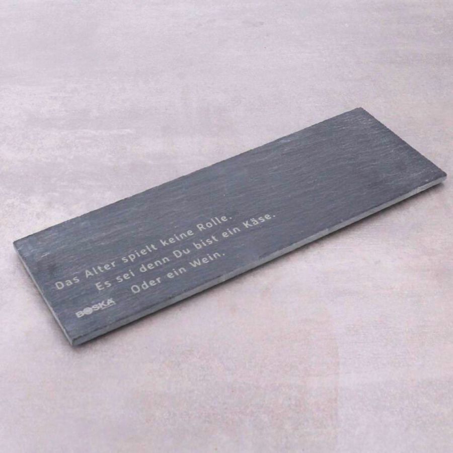 Gerne gravieren wir mittels einer hochpräzisen Lasergravur einen persönlichen Namen oder Text auf das Schieferbrett. Es ist auch ein Foto, eine Zeichnung oder ein anderes Motiv Deiner Wahl möglich. Du kannst es ganz einfach während der Bestellung hochladen.