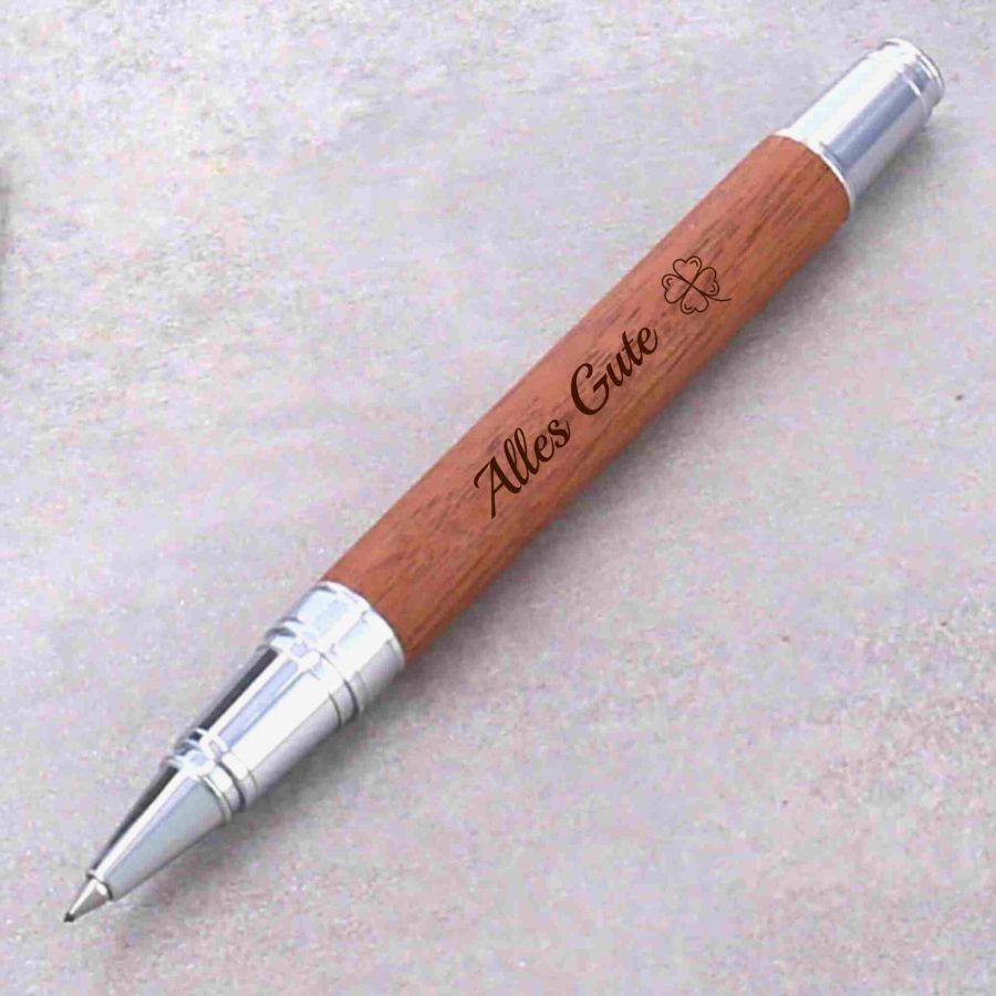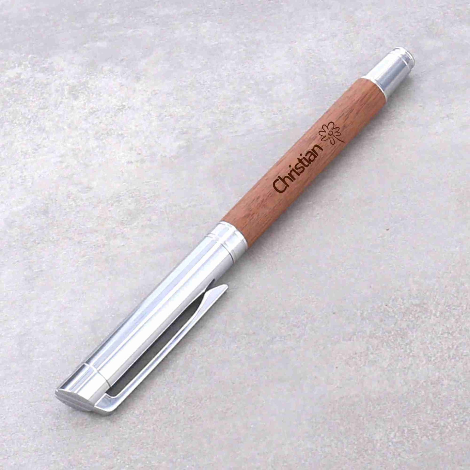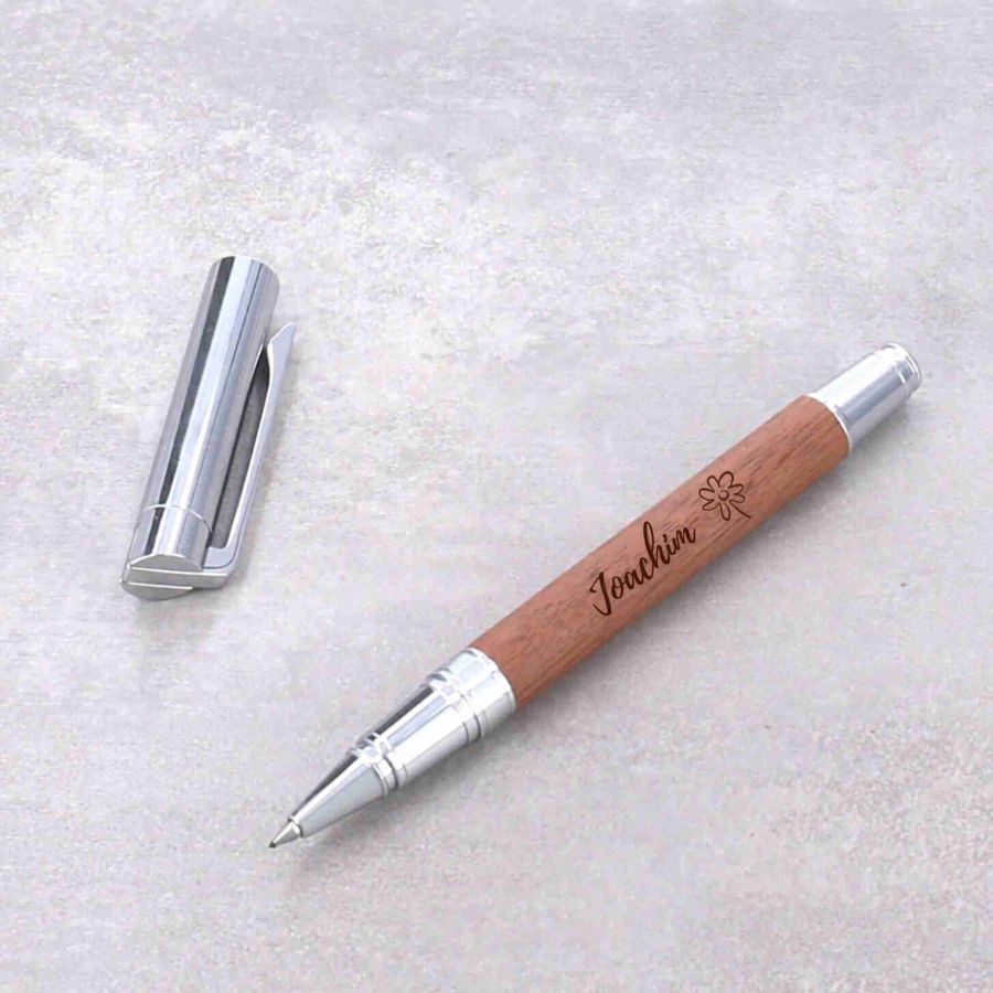 Personalisierter Tintenroller aus Holz als Geschenk zum Standesamt, zur bestandenen Prüfung oder zum Jahrestag